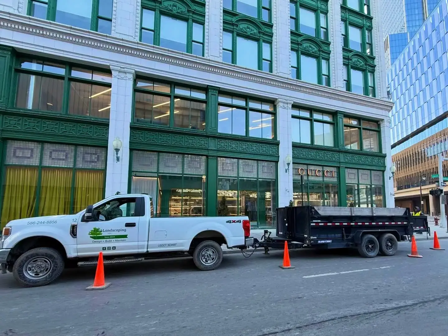 We are proud of our team for working quickly and diligently to restore the Gucci store’s landscape in Downtown Detroit. After getting a call from the Gucci store management team regarding a dead tree, we were able to quickly send out a team to remove and replace the Emerald Green Arborvitae. Our team’s quick response time and quality installation are what we strive for in every project we do.